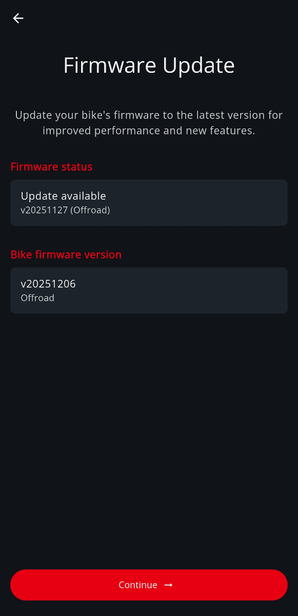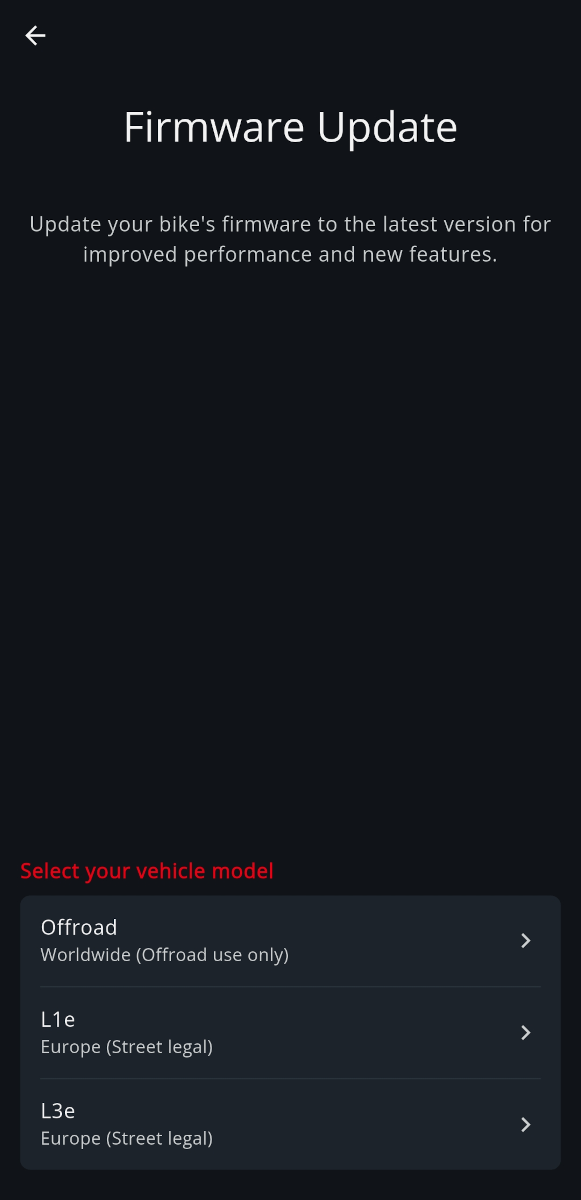 Some bikes required you to select your specific model before proceeding with the firmware update.