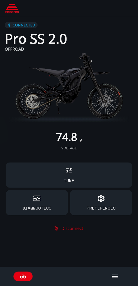 Open the app and connect to your bike. Navigate to “Diagnostics” and select “Firmware Update”.